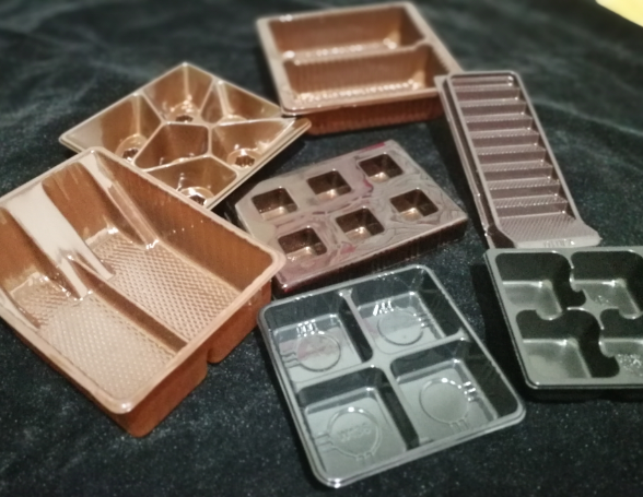 吸塑产品的原材料只有塑胶片材,胶片厚度一般不超过1.5MM,常用的片材有:PVC、PET、PP、PS以及在此基础上的植绒片材、镀金片材和防静电片材。
